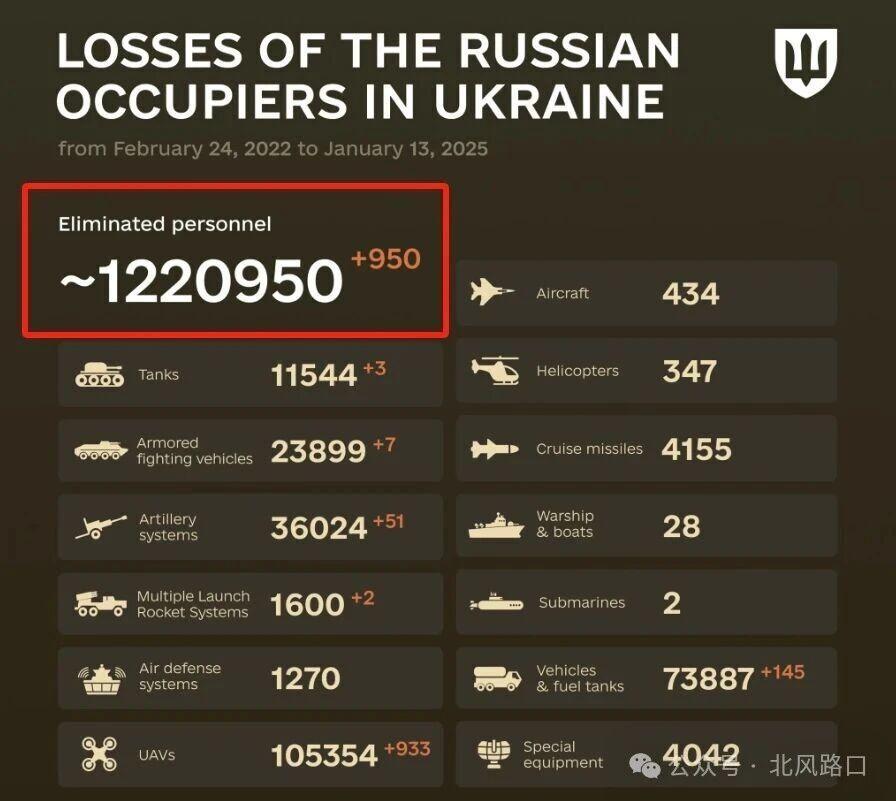 实际上,乌军1月12日发布的战报就显示俄军损失突破122万,如今,损失数据已经坐实。
